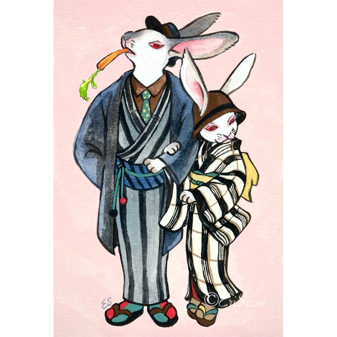謹んで新春のお慶びを申し上げます 皆様にとって幸せな 一年でありますように 本年も宜しくお願いいたします 🥕🐰🐰👘 #卯年 #レトロイラスト #HappyNewYear2023 #illustrations