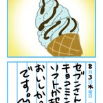珍しく続く今日の言わせてくれ絵日記 チョコミン党の皆様に伝えたいんですが思ったより甘すぎずむしろちょっと苦みがあって大変良いものでした…。コーン苦手な私ですがこのソフトのコーンはおいしかったのでまた食べたいです。 #ねきの夏休み2023