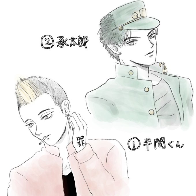 遅くなりましたが、リプきたキャラの 顔だけ描く、二つだけ描きました〜! お待たせしてすみません💦 半間くんも承太郎も綺麗なお顔だなぁと思って描いてて楽しかったです✨✨
