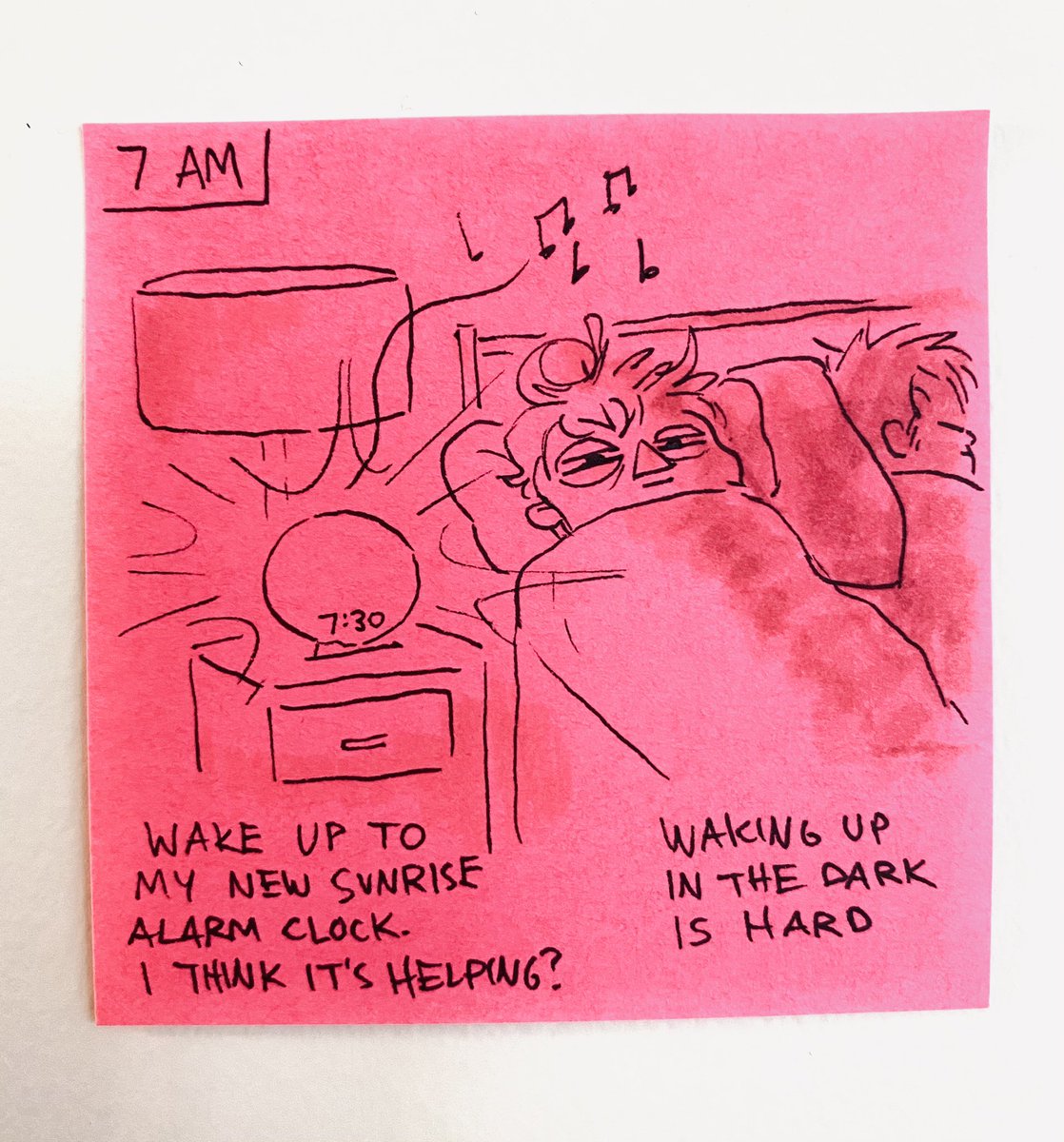 I only have bright pink post it notes so that’s how it’s gonna be this year #hourlycomicday #hourlycomicday2021