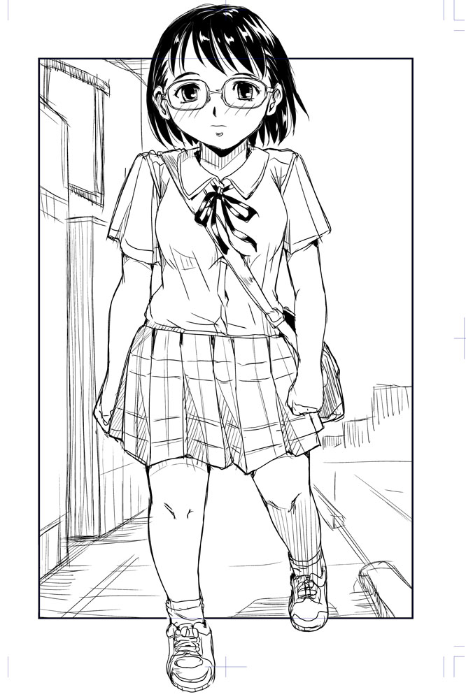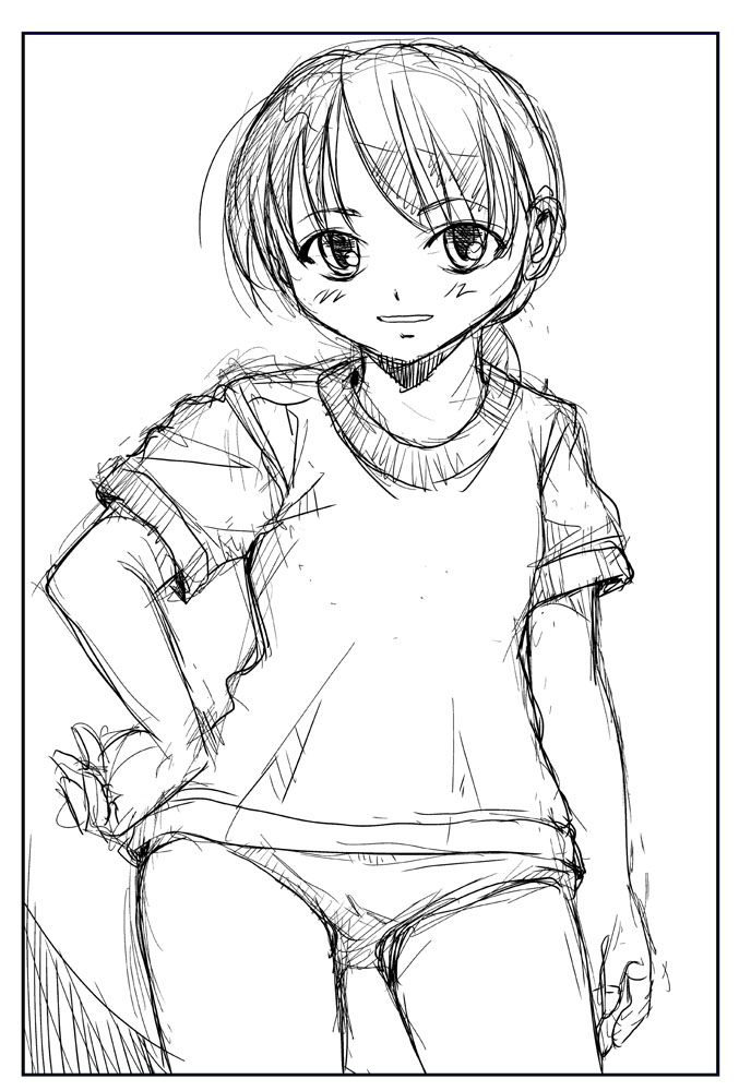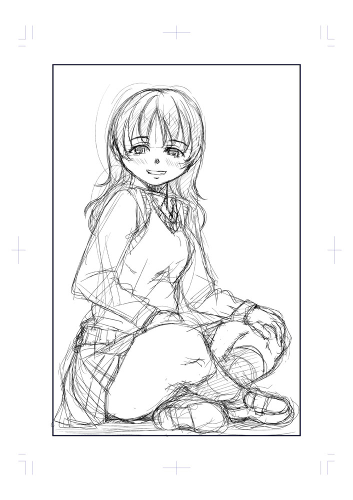 イキオイで描くらくがきJK 構図といっぱい引いた線でデッサン崩れをごまかす