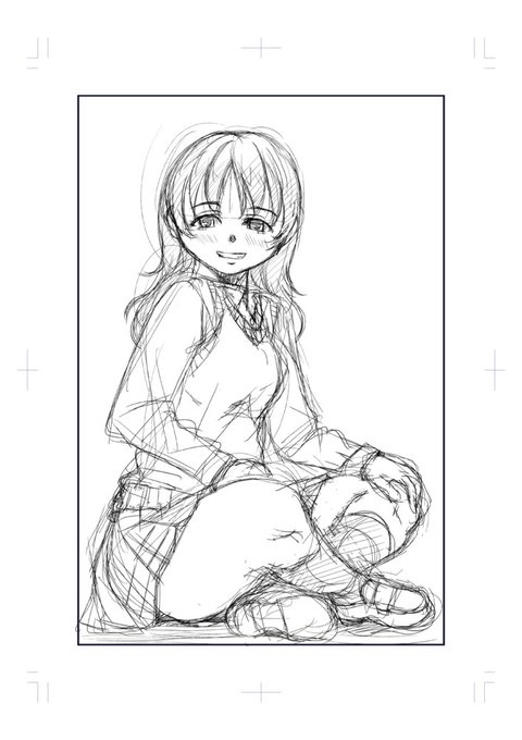4 52 イキオイで描くらくがきJK 構図といっぱい引いた線でデッサン崩れをごまかす 23/06/27 06:34