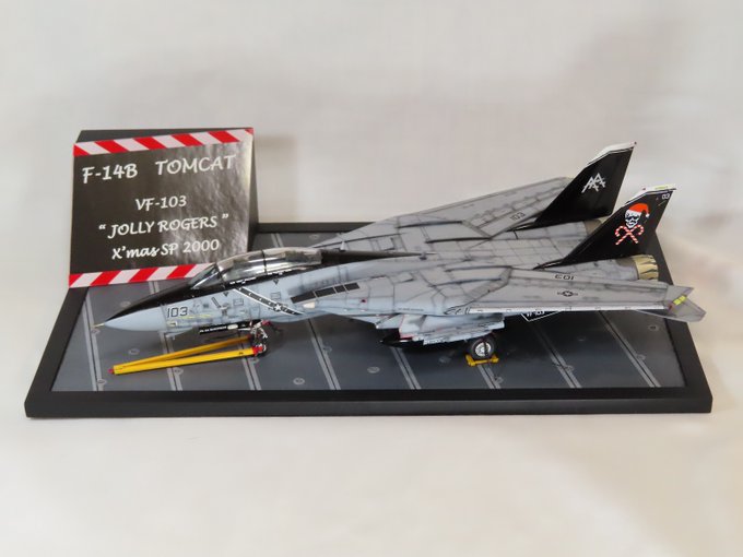 ハセガワ1/72 F-14Bトムキャット ”ジョリー・ロジャース” クリスマスSP 完成しました。 結構頑張って個体改造・ボックス写真をイメージしたディスプレイにしました。 #米海軍ジェット機祭り完成 #今月作ったプラモ晒そうぜ