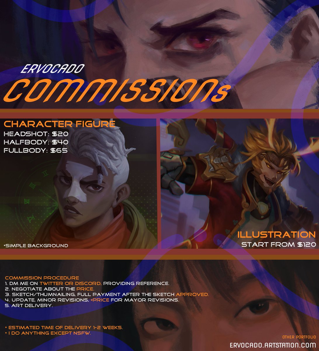 [Share/Re-tweet are very appreciated!] Hello! this was my first time open commission here. You can DM me here or on my Discord (Ervocado#7113) if you're interested! Payment only via Paypal. More: artstation.com/ervocado Thanks! #Commission #commissionsopen #ArtistOnTwitter