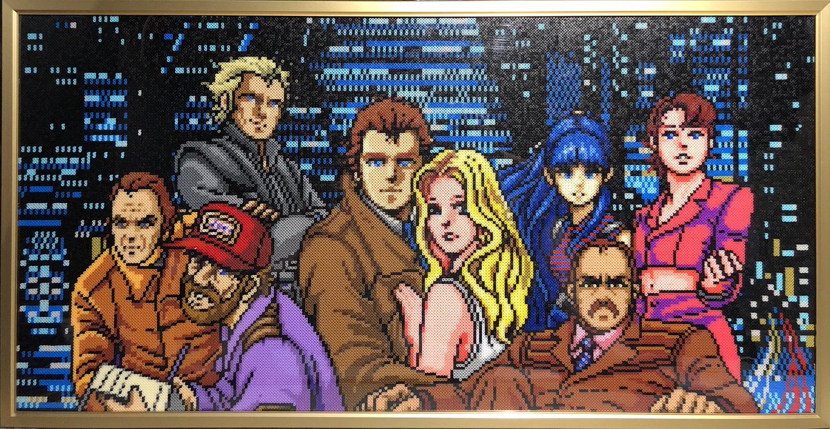 エインシャント「まもって騎士」13周年おめでとうございました 周年イラストに感銘を受け勝手ながらアイロンビーズで制作したもの ビーズ数57344、制作期間3ヶ月、色数9 公式様の御目に留まる様な事がございましたらこの制作物は進呈させて頂きます #アイロンビーズは無限大 #ビーズの日 #pixelart