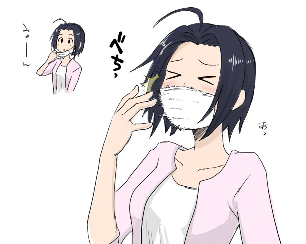 マスクがどれくらい伸びるのかがなんとなく気になってしまい引っ張ってみたあずささん