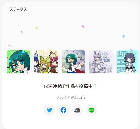13週連続で作品を投稿中! #pixiv pixiv.net/users/629735 えらい