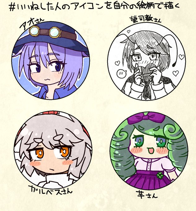 いいねした人のアイコンを自分の絵柄で描くやつ!! とりあえずまず4人描かせていただいたよ!