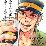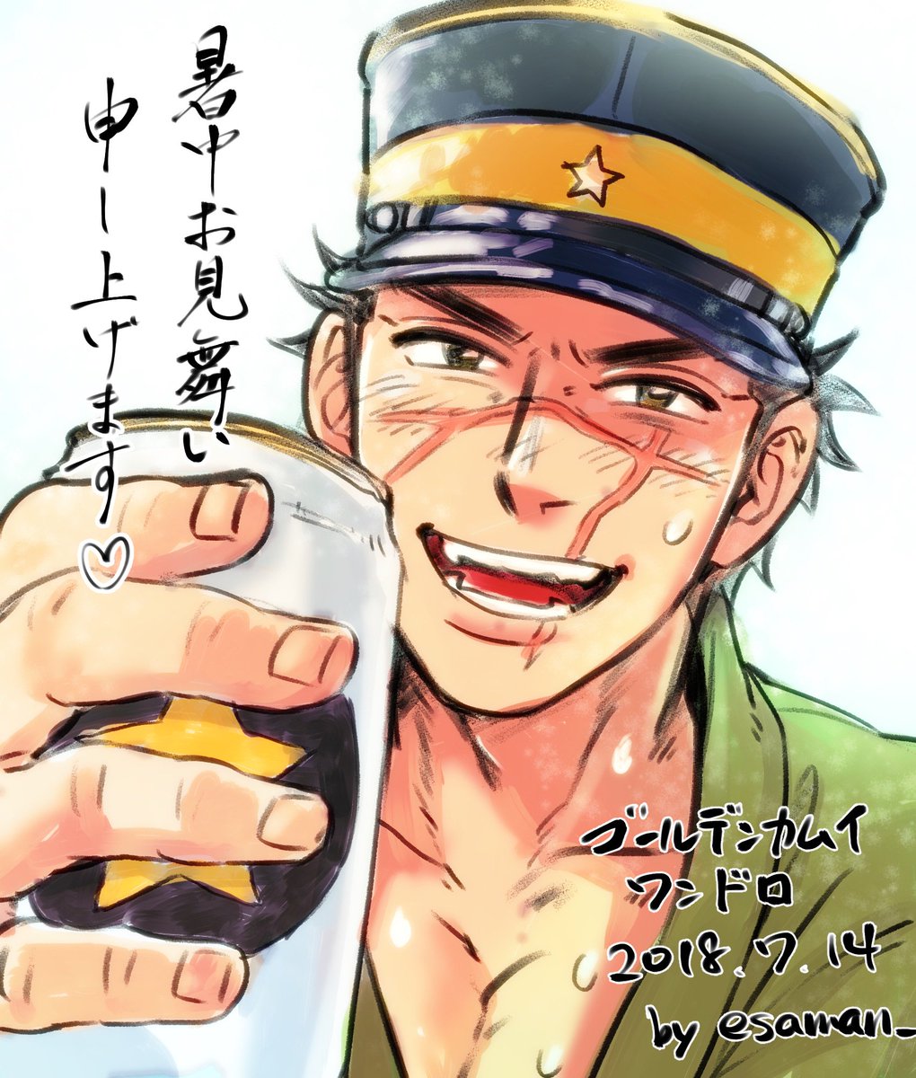 暑中お見舞い申し上げます!!もうすぐ佐一くんビールが発売ですね!通販でも購入できて嬉しい…発売日より少し後になるけど、乾杯できるのが楽しみです♡ #ゴールデンカムイ版深夜の真剣お絵描き60分一本勝負