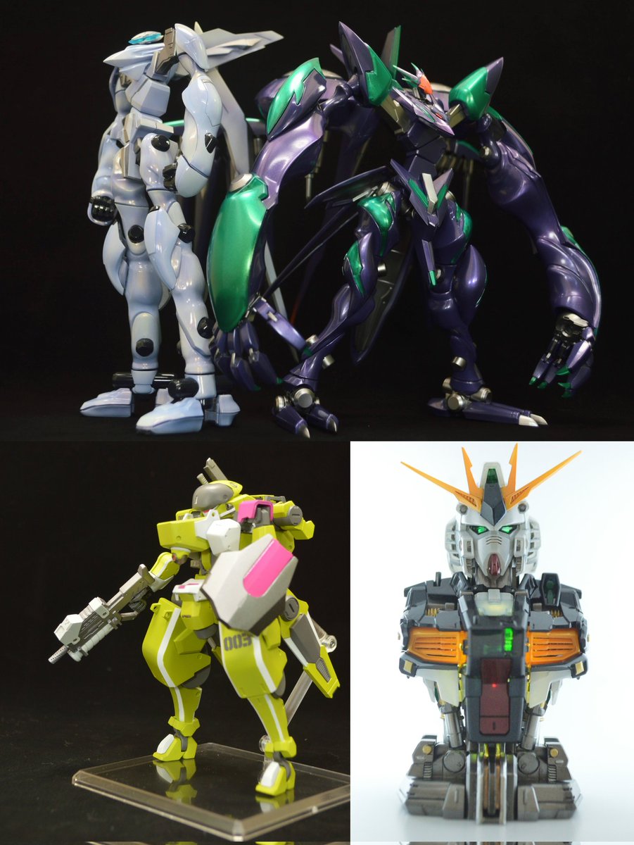MODEROIDのファフナー ザインとニヒト あぽーさんのガレキ『天児A3型』 メカニカルバスト νガンダム(クリア外装)の全塗装 4個なのでまあ例年通りだなぁ。 #今年作った模型晒そうぜ