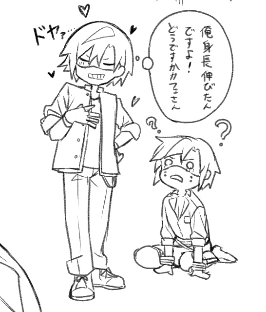 身長伸びて嬉しい学園くん描きました(そして変化に気づかないカフェサテ)
