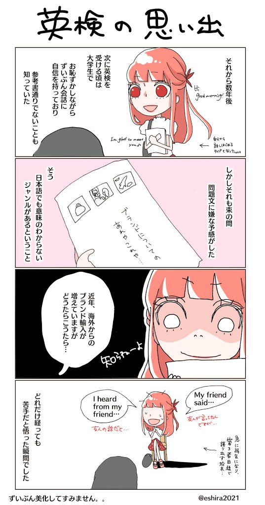 【英検の思い出📖.*°】② ずいぶん前のお話なので、 試験後の方のみお読みください。 英会話に自信ができた大学時代。 余裕の心境で臨んだはずが、 私に欠けていたのは、 まさかの一般教養でした。。 We wish you good luck♡ #英検2次 ◇準1級編◇ #漫画が読めるハッシュタグ