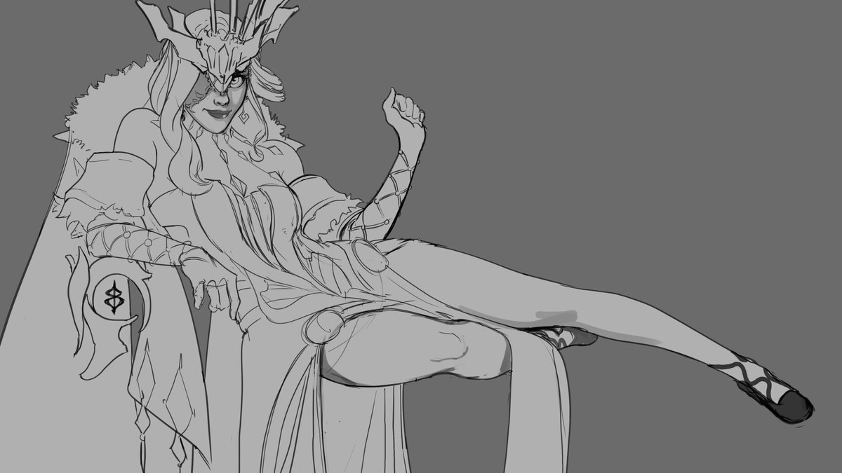 WIP. Lines for a private commission. La Signora, from #GenshinImpact #genshinimpactfanart #fanart #drawing #art #illustration #digitalart #sketching #lasignora