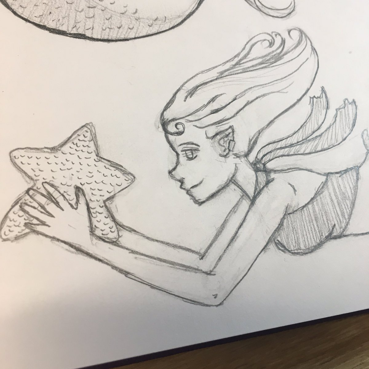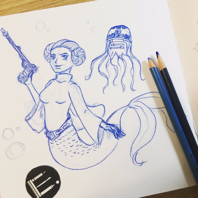 An adorable sketch of Mer-Princess Leia defending her part of the sea! I also love the #R2D2 jellyfish. #estampleyart #art #artist #draw #drawing #sketch #sketching #sketchbook #artistontwitter #mermay #mermay2021 #starwars #princessleia #maythefourth #MayTheFourthBeWithYou