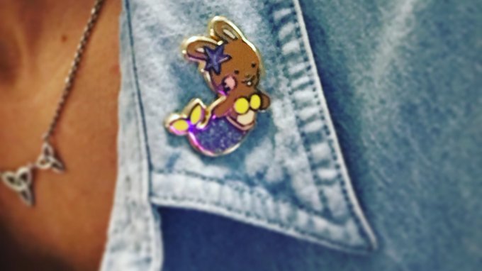 Today I’m wearing a Mermaid Bun pin created by the wonderful (and one of my fave YouTube Artists) @baylee_jae . I know I can wear it anytime but it’s especially fun during #MerMay . #estampleyart #bunbun #mermaids #bunny #bunnies #pin #enamelpins #artistoninstagram #mermay2021