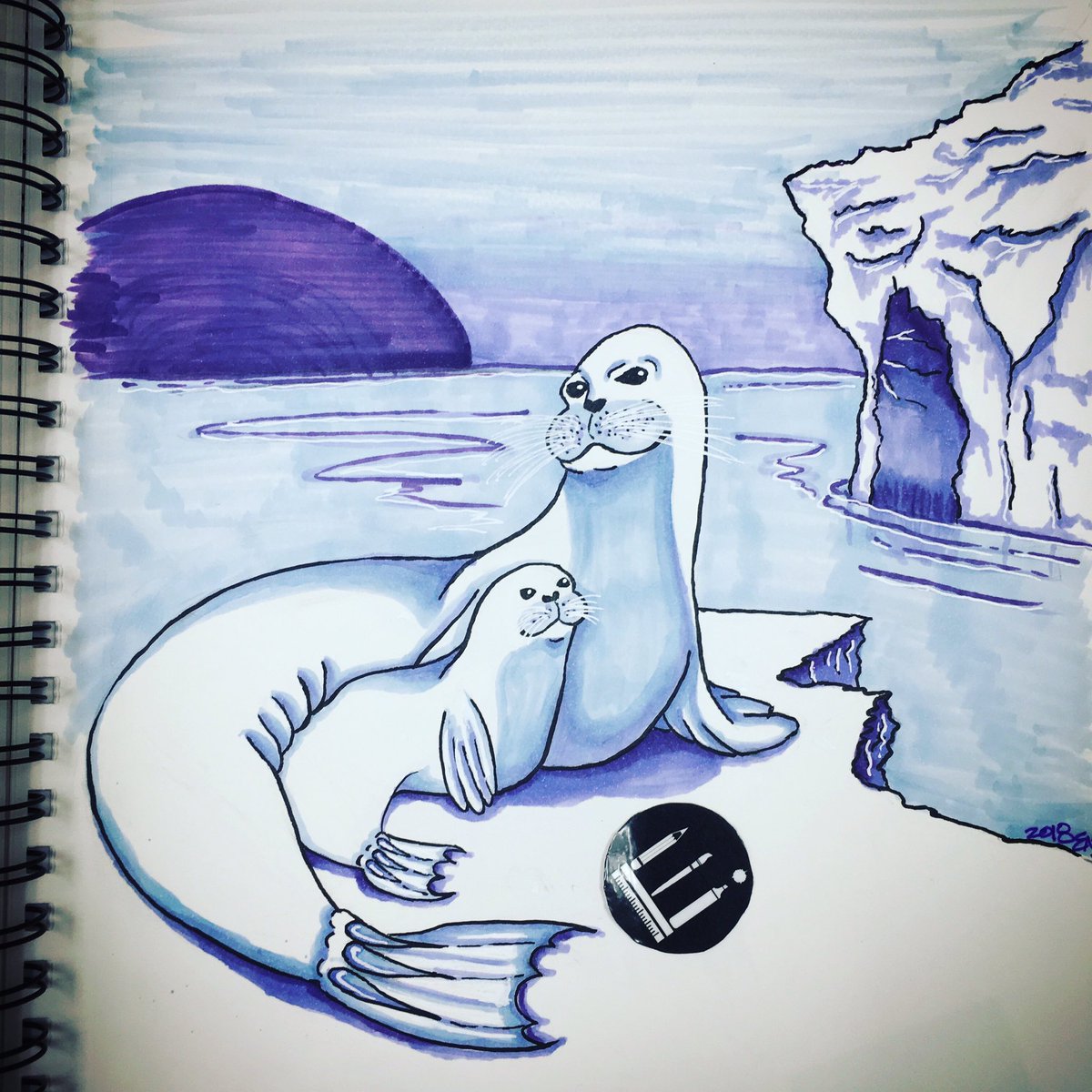 #tbt Another three-color piece I did a while ago with a daddy seal and pup. . #estampleyart #creative #art #artwork #artist #draw #drawing #sketch #sketching #sketchbook #illustrator #illustration #throwbackthursday #ArtistOnTwitter