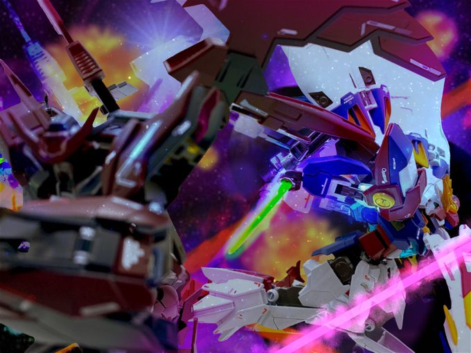 エピオンユニット (作: @swaipe0710 さん)とゼロユニット (作: @taipei0096 さん)の背景を僭越ながら描かせていただきました🖋 今にも動き出しそうな機体を前に、御二方のセンスを感じることができました✨ #ガンプラ #ガンプラ好きと繋がりたい #ガンプラの画像を貼るとRTされると聞いて
