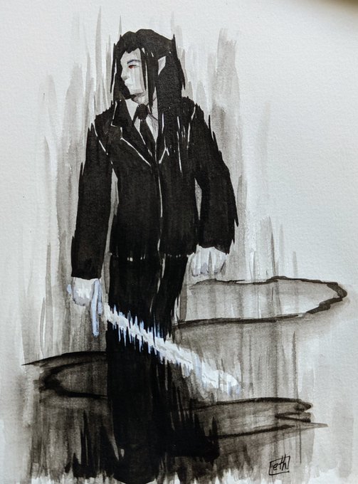 Inktober day 2 - Suit 'Suit' made me think of Arikado, aka the latest of Alucard's shitty secret identities, who I have never actually drawn, so!! #inktober #inktober2021 #inktober2021day2 #castlevania #fanart