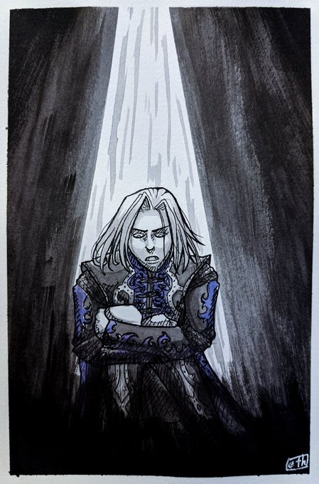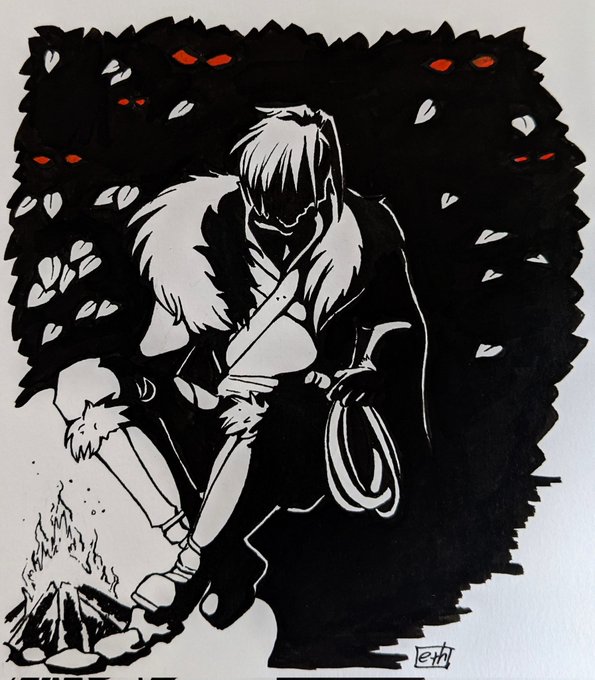 Inktober day 8 - Watch I wanted to do something really stylized and high contrast for this one, so: a lonely, solitary watch, back before Trevor had anyone to share watch shifts with. #inktober #inktober2021 #inktober2021day8 #castlevania #castlevanianetflix