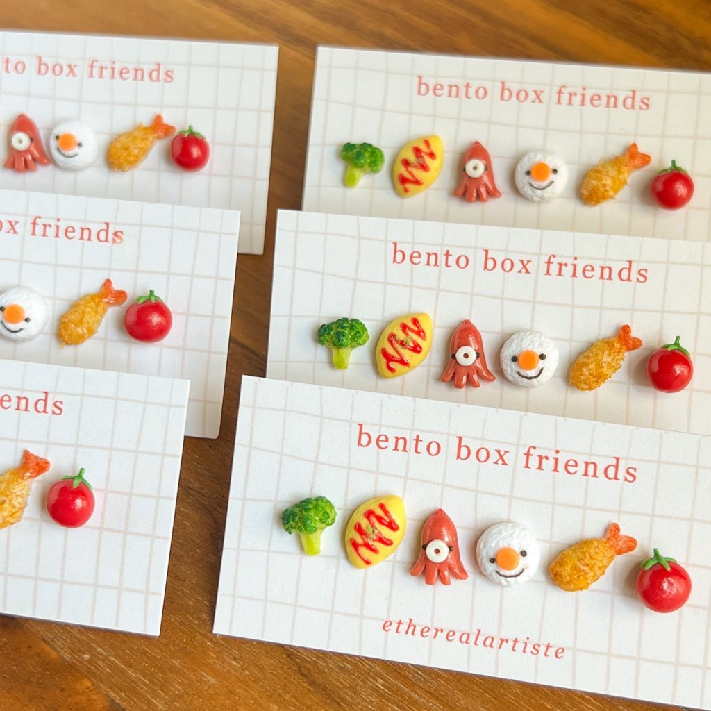 223 1710 bento box items but as a cute earring stud set 🥦🍅🍤🍙✨ 23/07/19 05:51