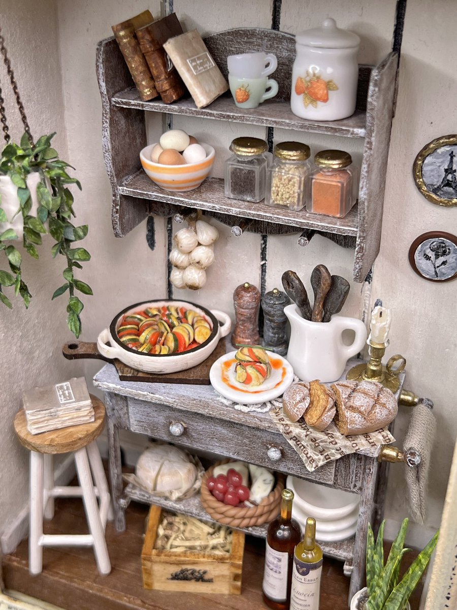 the finished miniature kitchen scene that I made, inspired by ratatouille 👩🍳