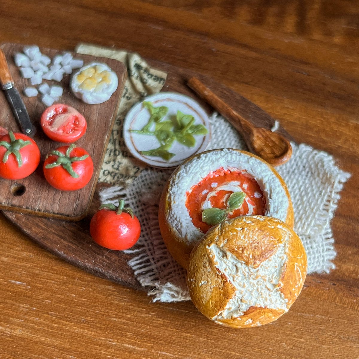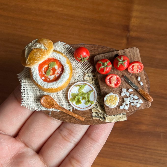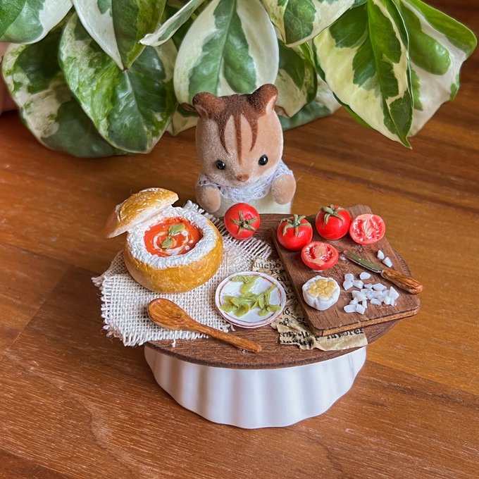 I think this miniature tomato soup scene is my fav creation 🫶🍅