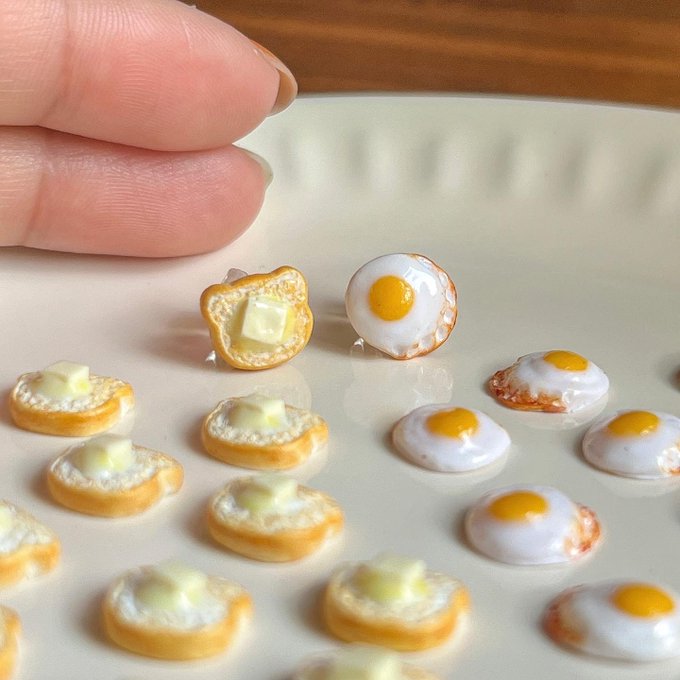 699 6018 bear toast and egg stud earrings 🍞🍳 23/02/19 08:36