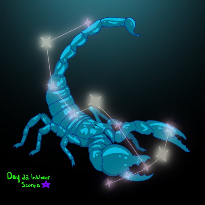2 9 Day 22 of my digital #Inktober is #Scorpio🦂 ...it’s an emperor scorpion under ultraviolet light. 20/10/23 06:39