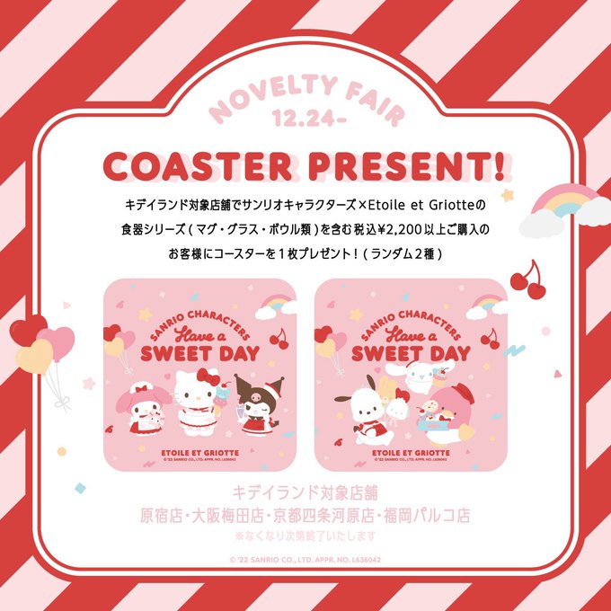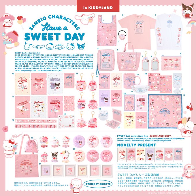 💖NEWS💖 サンリオキャラクターズ×Etoile et Griotteがキデイランドに登場します❣️SWEET DAYシリーズからは5つの新商品も✨ノベルティはコレクションミニカード💘 店舗9.16(金)~ オンラインショップ9.12(月)12時〜先行予約 ※シリーズごとに取扱店舗が異なります 詳細▶︎ kiddyland.co.jp/event/sanrio_e…