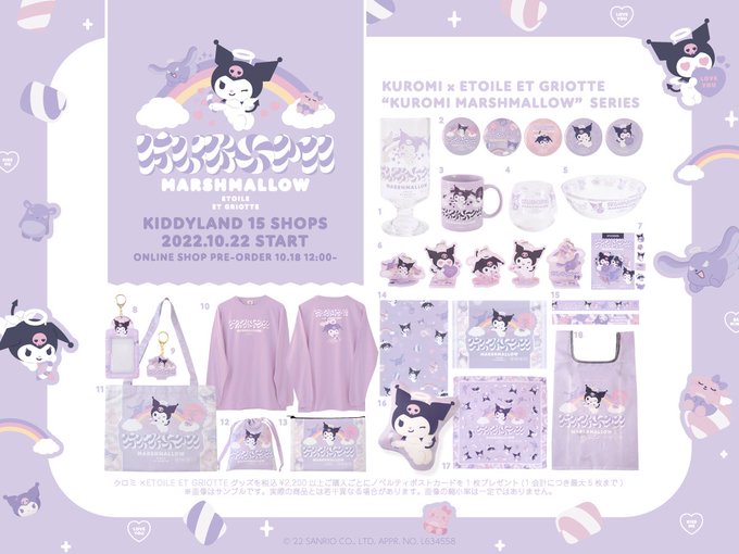 💜クロミ×Etoile et Griotte💜 "KUROMI MARSHMALLOW"シリーズ あまいマシュマロの雲がうかぶラベンダー色のお空でキューピッドなクロミとなかまたちが遊んでいるラブリーなデザイン💖☁️✨ 🎪キデイランド15店舗▶︎10/22(土)〜 🛒オンライン先行予約▶︎10/18(火)12:00〜 kiddyland.co.jp/event/kuromi_e…
