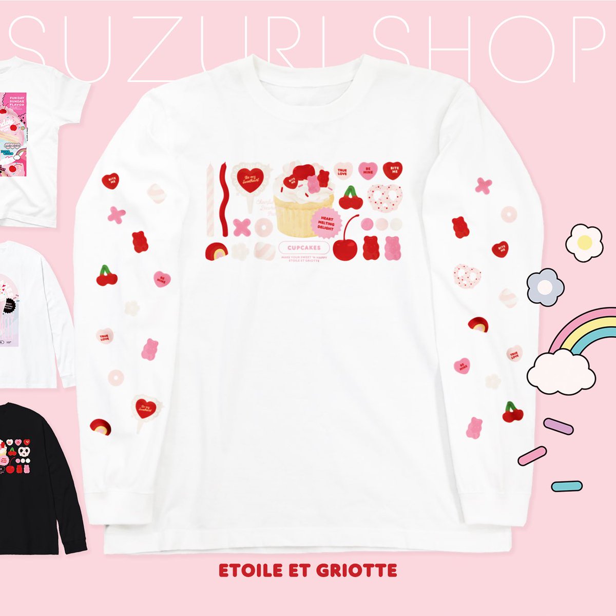 🍒SUZURI SHOP🍒 ‘CHERRY ON CAKE’MVで描かれた4枚のイラストがSUZURIに新登場❣️iPhoneケースやロンTなど様々なサイズや色をお選び頂けます🌟ぜひお気に入りをみつけてね❤️🔥 suzuri.jp/etoilegriotte