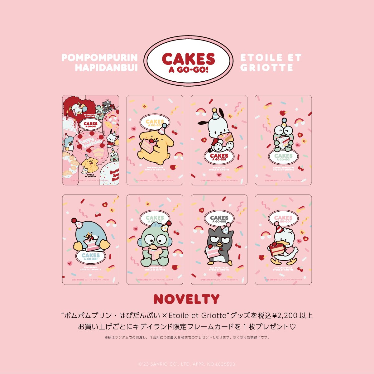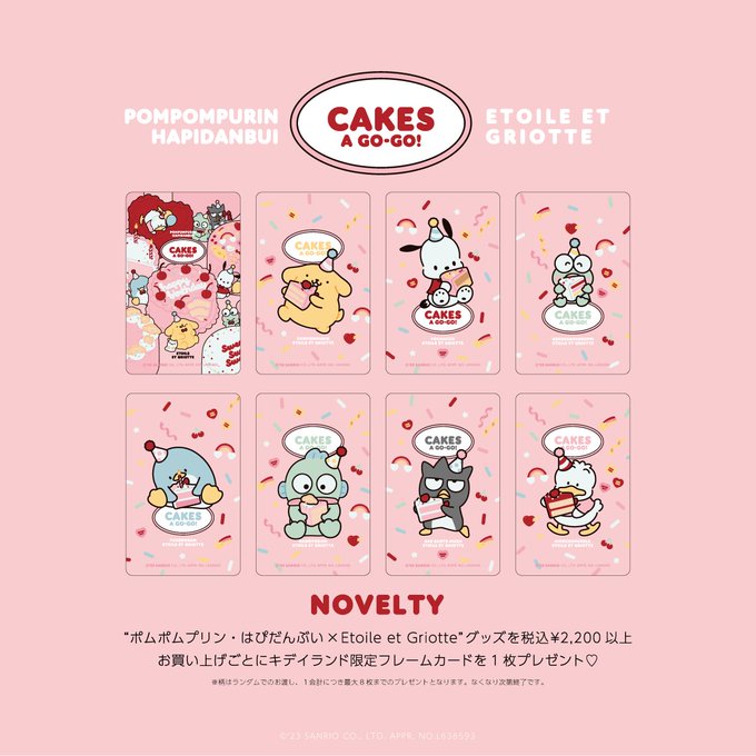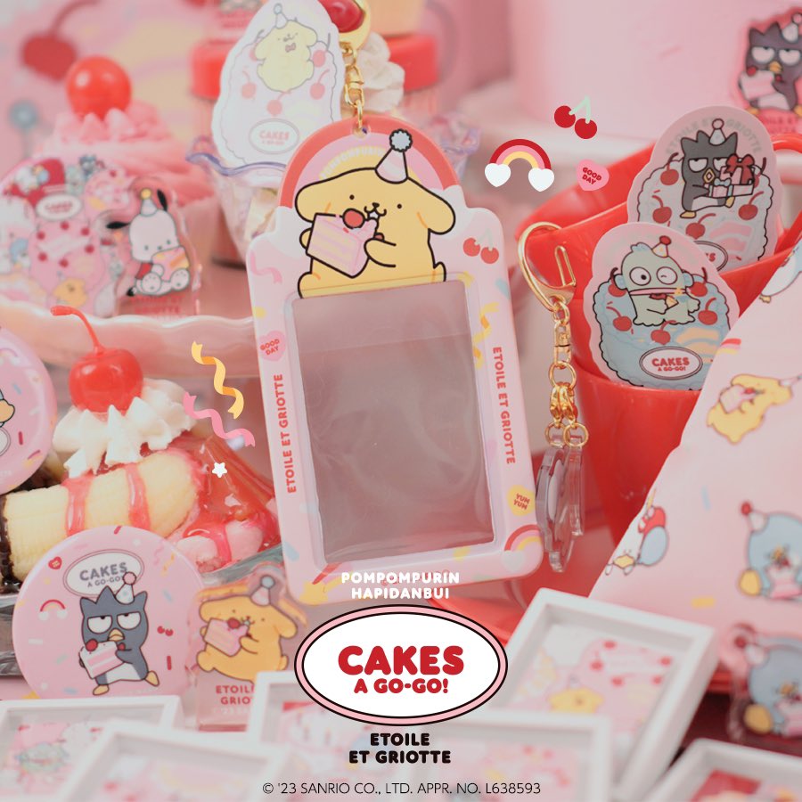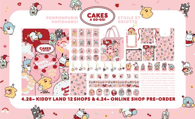 🍒𝓝𝓮𝔀🍒 💛ポムポムプリン・はぴだんぶい×Etoile et Griotte💛 🎂CAKES A GO-GO!シリーズ🎂 プリンくんのお誕生日をはぴだんぶいたちがお祝いしてるラブリーなデザイン💝🎉ノベルティも🎶 4/24🛒オンライン先行予約スタート✨ 4/28🎪キデイランド12店舗で発売✨ 詳細🧁kiddyland.co.jp/event/sanrio_e…