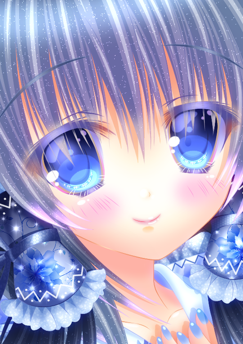 #このタグを見た人は自分の絵柄の目部分を見せる 左は昨年投稿の青霊夢さん、右は今制作中のロリィタ絵。 瞳が青なのは同じですが、雰囲気に応じて描き込みを変えています。(誰でもやってるとは思いますが💦)