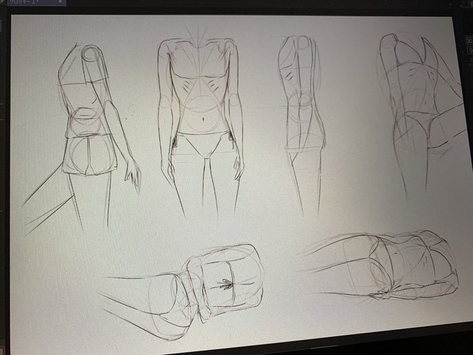 クロッキー15回目! 丸と台形に分割するとすごく描きやすいね! #イラスト #イラスト好きな人と繋がりたい