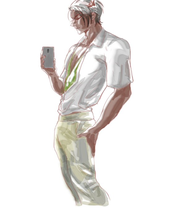 Oga's turn in summer!! 🐃💚 - It was a challenge shaping out the curves of the muscles and clothes but I still had fun ;w;)/ I gotta study more to create a cooler oga... #オウ画 #holostars