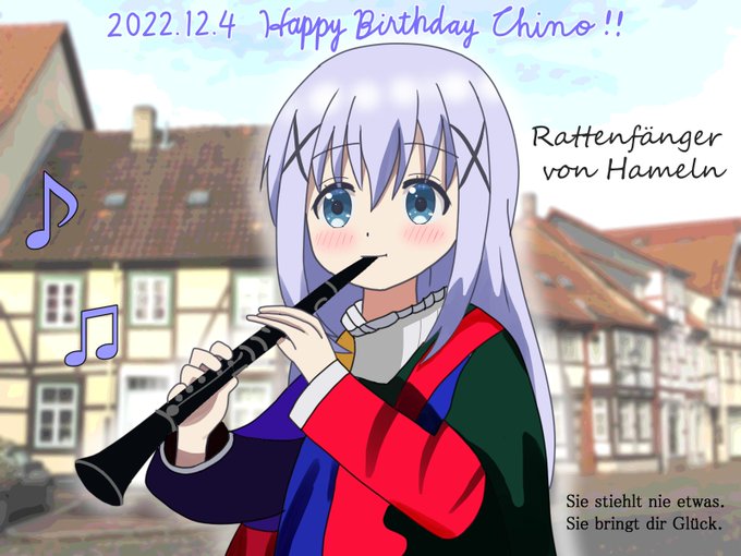 【イラスト】 香風智乃さん、誕生日おめでとう🎂🎉 一推しになって8年半、彼女を超えるキャラは現れてません。今後も一番好きでいます!! 「ハーメルンの笛吹き男」ならぬ「ハーメルンの笛吹き少女」をモチーフに描きました✎ #香風智乃誕生祭2022 #香風智乃生誕祭2022 #ごちうさ #gochiusa