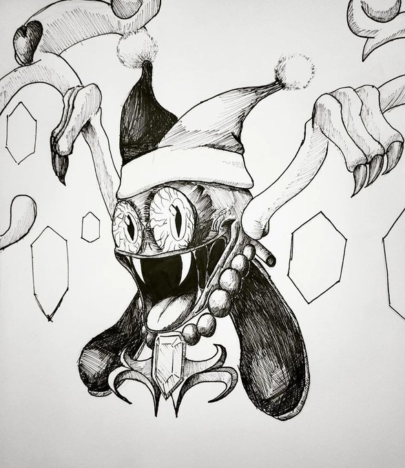 I chose to forego the official prompts and go with my own. Every day is something that scared or unsettled me when I was little. First day is the first thing I vividly remember scaring me, Marx from Kirby. #inktober2022 #art #artwork #drawing #pendrawing #penart #ink #inkdrawing