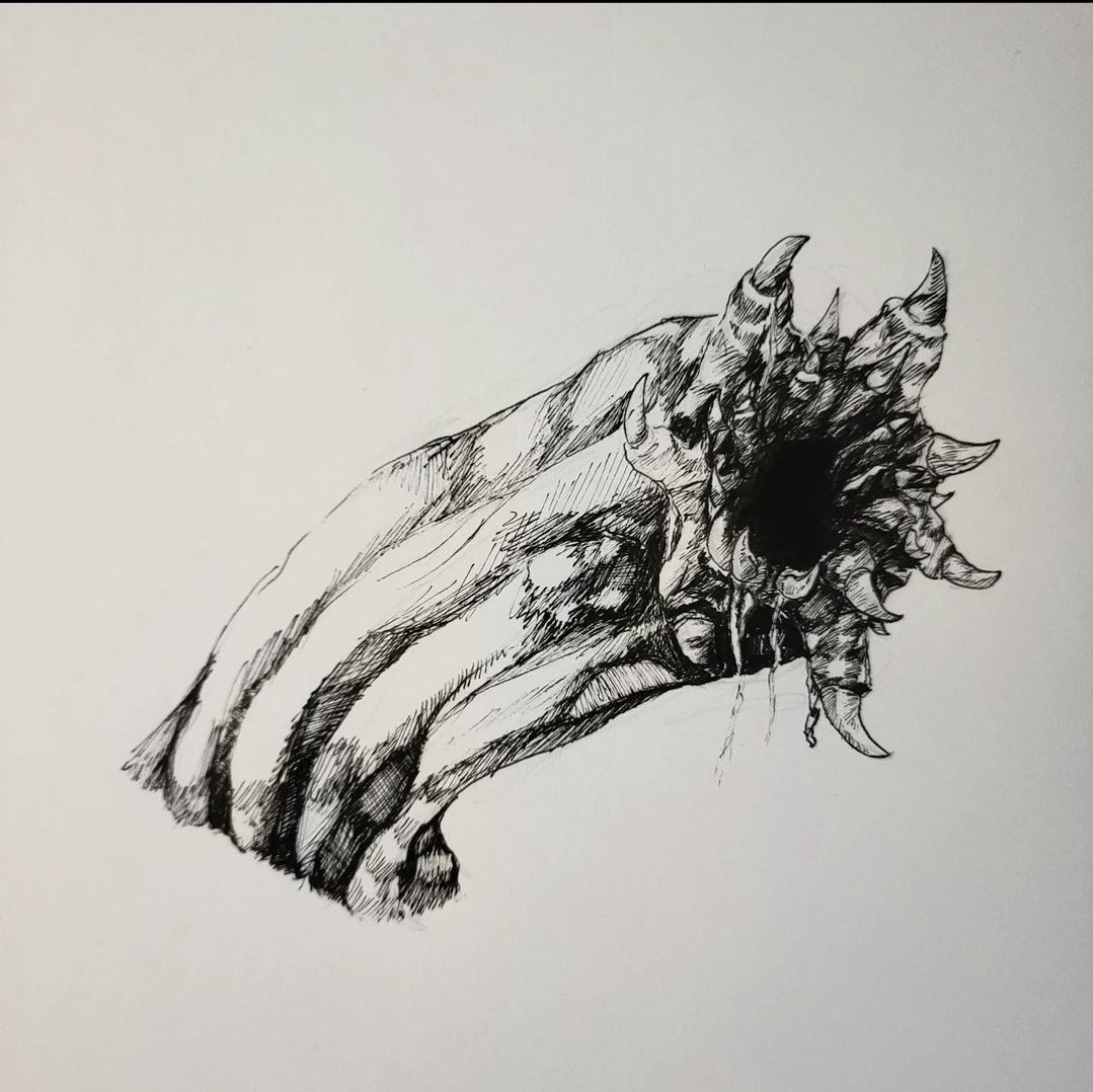 Day 6, clicker Yeah clickers in general terrified me and the concept of a spore based undead that has so much grown over its eyes that it uses echolocation still creeps me out today. #art #artist #artwork #drawing #pen #pendrawing #artgallery #draw #drawingart #inktober2022