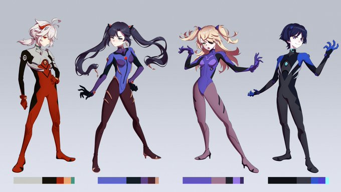 Synchronization: complete Kazuha, Mona, Fischl and Wanderer/Scaramouche on their plugsuits #GenshinImpact #ArtPh twitter.com/evanblank10/st…