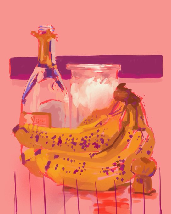 Still Life from Rose 🍌💕🌸 - #pink #pinkie #candle #banana #bandana #champagne #prosecco #veuveclicquot #flame #myoldflame #digitalpaint #speedpaint #ripe #illustration #colorstudy #painting