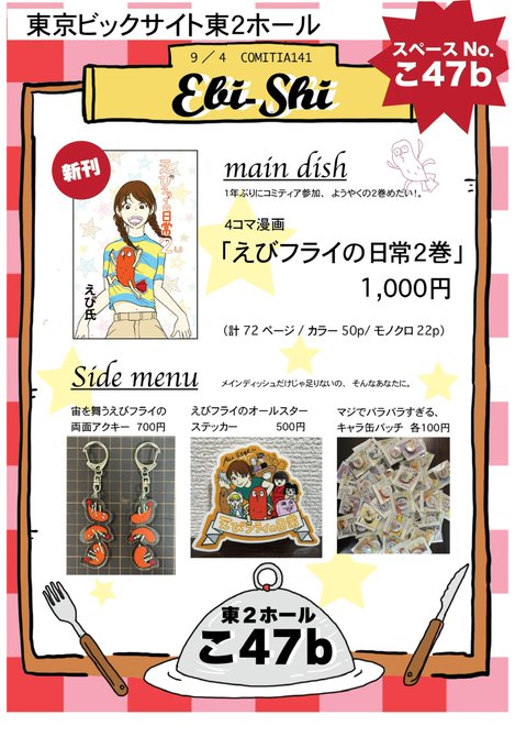 遂に明日はコミティア! お品書き〜🫶 東2ホールのスペースNo.こ47b🍤 えびと、握手🤝 約1年ぶりの参加でドッキドキワクワクだわ!漫画はやっぱ、楽しいなり! #コミティア141 #コミティアお品書き