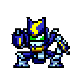 リリース記念でロックマン風クロスメサイア君。こんな感じ? まだ模写もした事無くて細かいディテール把握してないまま勢いに任せてやっちゃった感はあるけどw #メダロット #メダロットS #ドット絵