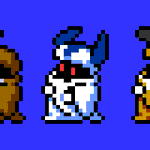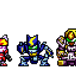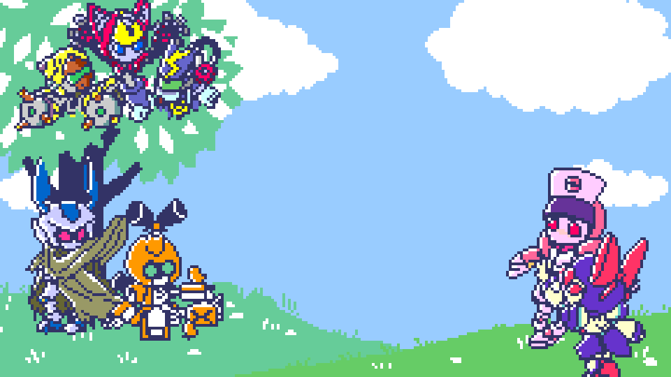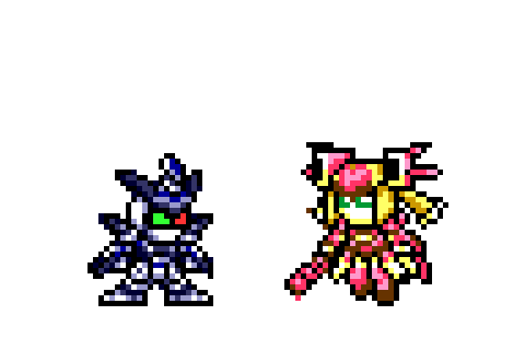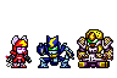 1年振りにドット絵描いたわ。今やってるメダ2風オープニングに触発されて。引き続きロックマン風のだけど、クロスメサイアを前描いたやつから微妙に修正したのと新作ファンシーエール。そして宣言通りもう満足w #メダロット #メダロットS #ドット絵