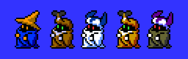 ウチのかわいい黒魔術士たち。 目元が何か似てるなって思っちゃったからね、しょうがないよね。 #メダロット #ドット絵