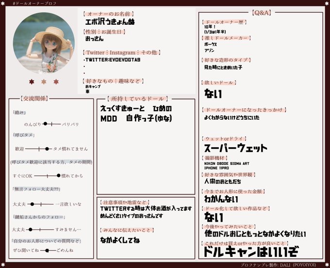 固定更新✨ 長野県でキャンプしたり車遊びしたりしているドルおじです。 うちの子:MDD27番ヘッド 舗装路:CT9A ランサーエボリューション 未舗装路:JB23 ジムニー #ドールオーナーさんと繋がりたい #MDDはいいぞ