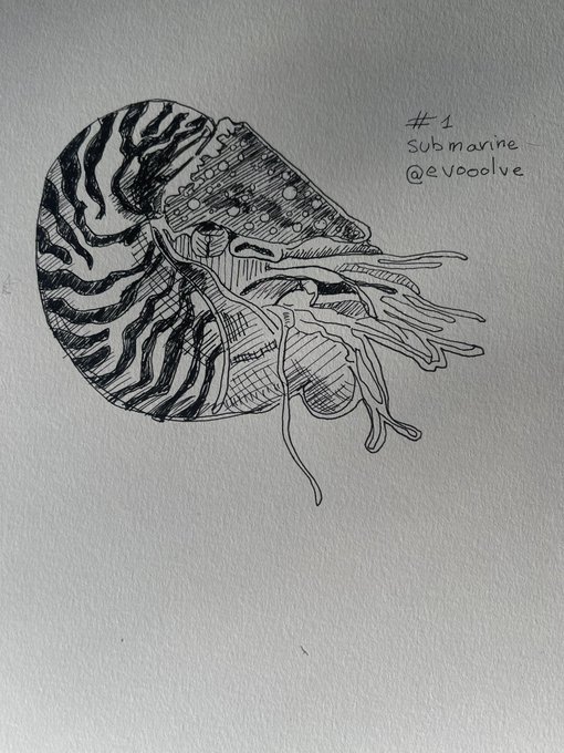Nautilus day 1 of #inktober2022 Submarine but also 45 of EVOOOLVE board game #inktober #sciart #biology #evooolve #kickstarter #science #illustration #ink
