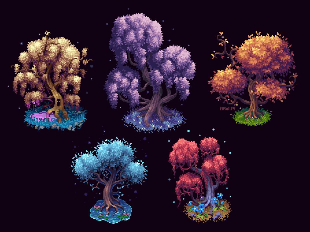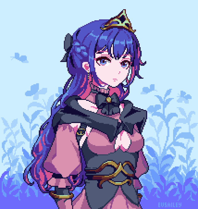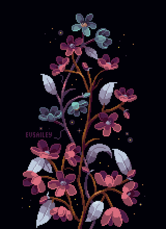 Hey there #PortfolioDay 🎨 I'm a pixel artist Evsailey and I draw nature stuff and anime🦋💕(I practice pixel animation as well)