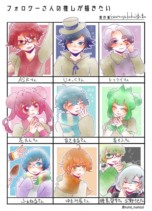 草汰さんよりSHOW what SEVEN、 あびしにあんさんよりふぁねるさん、 海さんより種島碧亨さん、公野ちせ。さん 描かせていただきました√ノシ>ω<)ノシ リクエストくださった方ありがとうございました! #フォロワーさんの推しが描きたい