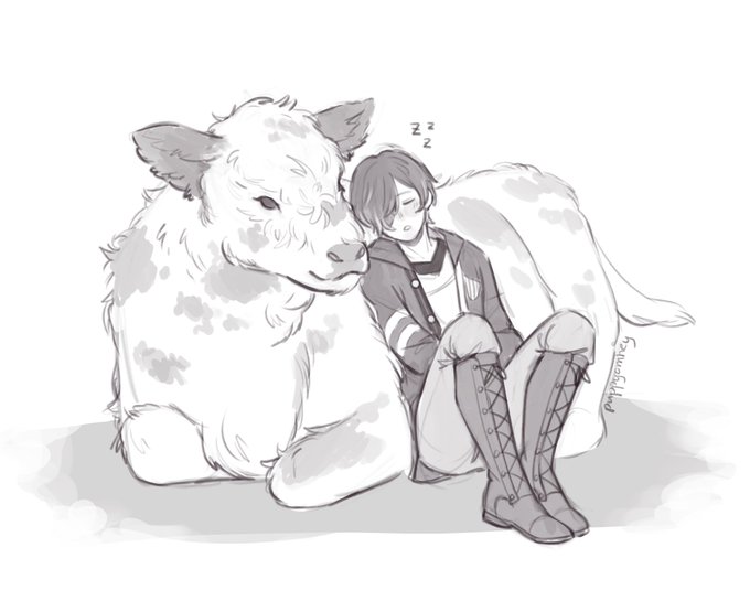 srry for the lack of drawings recently, take belphie napping with an a actually cow #obeyme #obeymefanart #obeymebelphegor