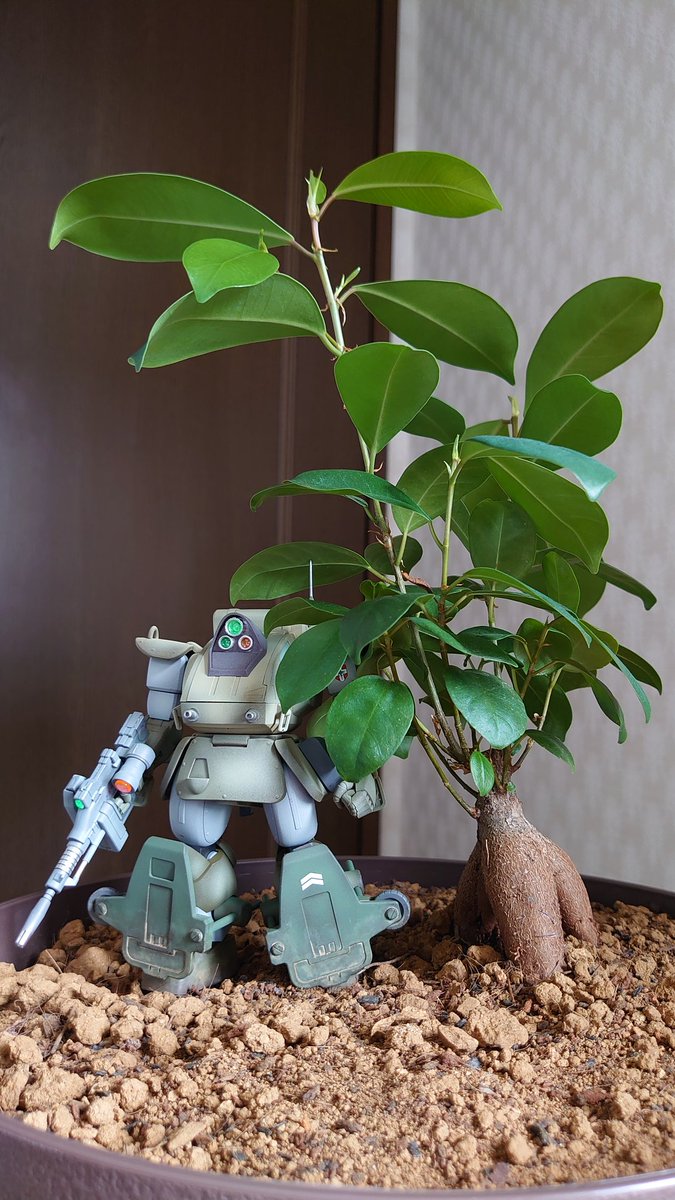 2 103 #今月作ったプラモ晒そうぜ 6月は、この2つだけ💦 クスィGは、ホワイトパールでしてみたんですが❕光沢クリアを吹いたが余りテカりきらなかったですね➰✨ ガジュマルだけが、少し育ちました。 23/06/30 10:17